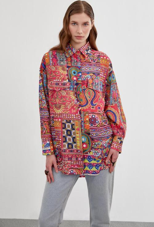 Desenli Fuşya Uzun Kollu Gömlek G-0066