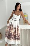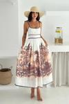 Rahatlığı ve şıklığı bir arada sunan bu kahverengi desenli keten elbise, doğal dokusu ve zarif deseniyle yaz gardırobunuzun favorisi olmaya aday. Hafif yapısı sayesinde sıcak havalarda ferah bir kullanım sunar, ketenin kendine has dokusu ile stilinizi öne çıkarır.