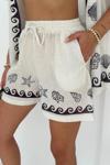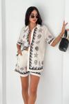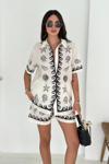 - Bağcıklı kemer detayı ile hem şıklığı hem de rahatlığı bir arada sunar.; - Astarsız yapısı sayesinde hafif ve serin tutan bir kullanım sağlar.; - Dijital baskı teknolojisiyle üretilmiş desenler, canlı renkler ve net çizgilerle dikkat çeker.; - İnce kumaşı yaz ayları için idealdir; sıcak günlerde bile konforlu hissettirir.; - Desenli tasarımıyla göz alıcı bir görünüm kazandırırken, stil sahibi kombinler oluşturmanızı kolaylaştırır.; - Kadın ve kız kullanıcılarına hitap eden bu takım, her yaş grubundaki bireyler için uygundur.; - Normal boy kesimi ile vücut hatlarınıza uyum sağlayarak zarif bir siluet çizer.; - Slim kalıbı sayesinde modern ve şık bir duruş sergilerken hareket özgürlüğünüzden ödün vermezsiniz.; - Türkiye'de üretilen bu keten şortlu takım, yerel malzemeler kullanılarak el değmeden üretilmiştir.