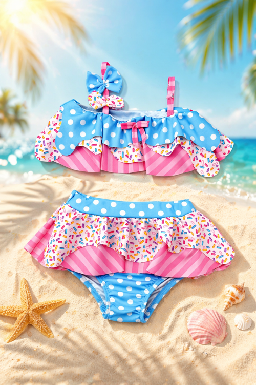 - Dalgıç/Scuba dokuma tipine sahip, dayanıklı ve esnek kumaşı ile suyun içinde ve dışında konforlu bir deneyim sunar.; - Her yaş grubuna uygun tasarımıyla çocukların rahatlıkla kullanabileceği bir mayo bikinidir.; - 30 derecede hassas yıkama talimatına uygun şekilde kolayca temizlenebilir; böylece mayonun uzun ömürlü kullanımı sağlanır.; - Askılı üst modeli sayesinde omuzlarda rahatlık sağlar ve güneşten korunma imkanı tanır.; - Baskılı deseniyle dikkat çekici bir görünüm kazandırırken, slip alt kesimiyle şık ve modern bir siluet oluşturur.; - Normal bel yüksekliği ve kapsız kap yapısı ile vücuda tam oturan ancak rahatsız etmeyen bir yapıya sahiptir.; - Toparlayıcı özelliği sayesinde daha sıkı ve düzgün bir görünüm elde edilmesine yardımcı olurken aynı zamanda hareket özgürlüğü sunar.; - İki parçadan oluşan set içeriğiyle hem üst hem de alt parça olarak kombinlenebilme avantajını beraberinde getirir.