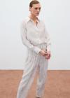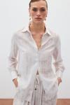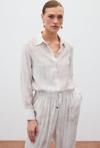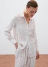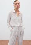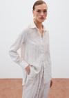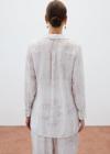 Ön düğmeli, geniş manşetli uzun kol, kalça altı boy, desenli salaş gömlek.