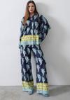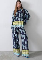 Desenli Saten Bol Takım - İndigo