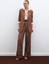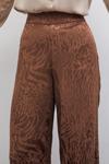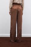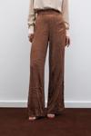 Yüksek bel, yan fermuarlı, salaş paça, desenli saten pantolon.