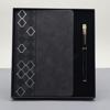 Desenli Siyah Deri Defter Kalem Set
