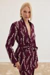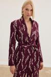 Desenli Uzun Ceket - Bordo