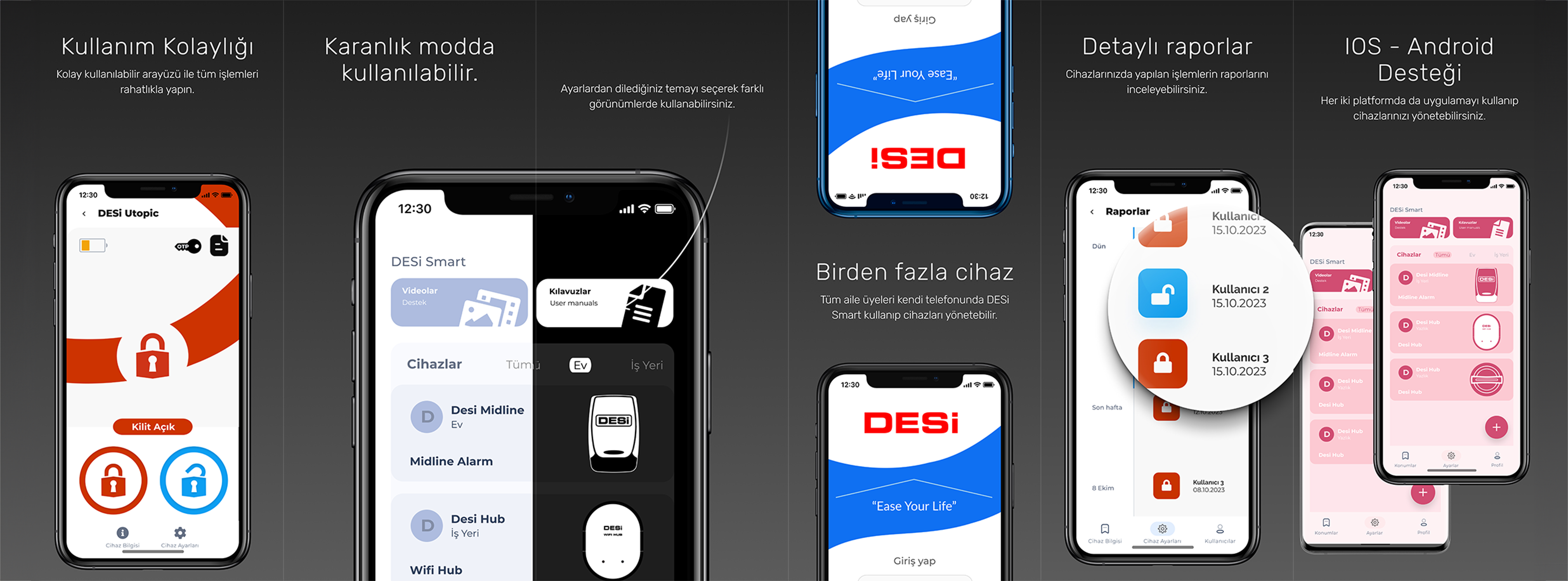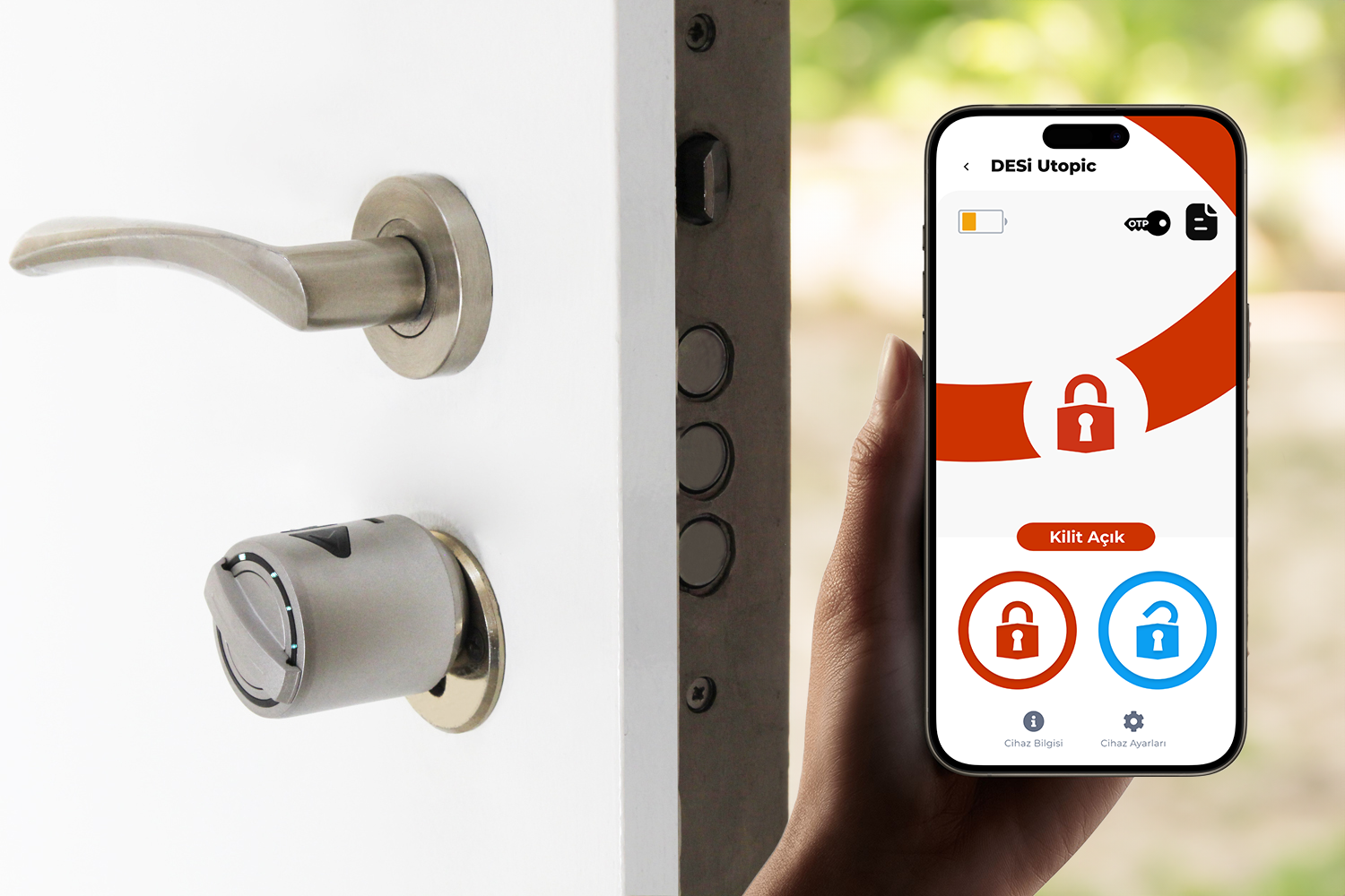 Dünyanın en küçük akıllı kilidi Utopic R ile kapınızı telefonunuzdan veya haricen satılan parmak izi, şifre ve uzaktan kumandayı kullanarak açıp/kilitleyebilirsiniz. Şarj edilebilir lityum pilleri sayesinde pil değişimi yapmadan tekrar şarj ederek kullanabilirsiniz. DESi Utopic R kapınıza sadece 1 dakikada takılır. Ayrıca evde olmasanız bile oluşturacağınız tek kullanımlık kodlar ile misafirlerinize kapıyı açtırabilirsiniz.