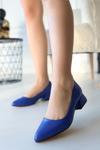 Butik Desniy Mavi Cilt Topuklu Ayakkabı