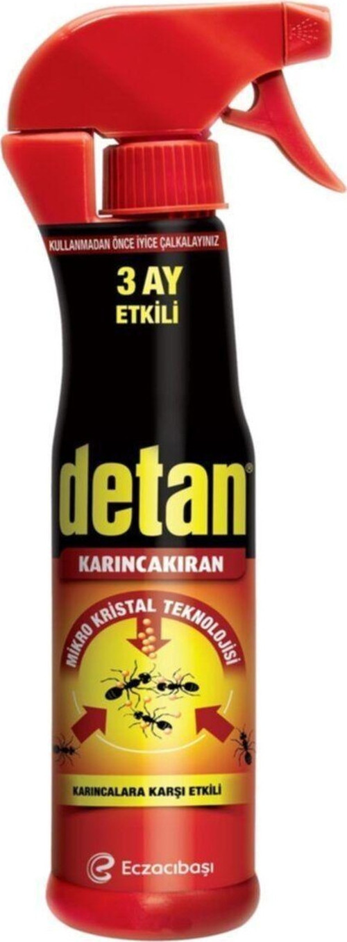 Detan Karınca İlacı 250 Ml. (Karıncakıran) Karıncalara karşı kesin çözüm sunar. Karıncaların akıllı haşereler olduğu unutulmamalıdır. Bu ilaç karıncaların geçiş yollarına veya doğrudan üstlerine uygulanabilir. Hızlı bir şekilde sersemletir ve öldürür. flush out özelliği sayesinde haşerelerin dışarı çıkmasını sağlar. aktif maddeye bulaşan karınca en geç yarım saat içinde etkisini gösterir.