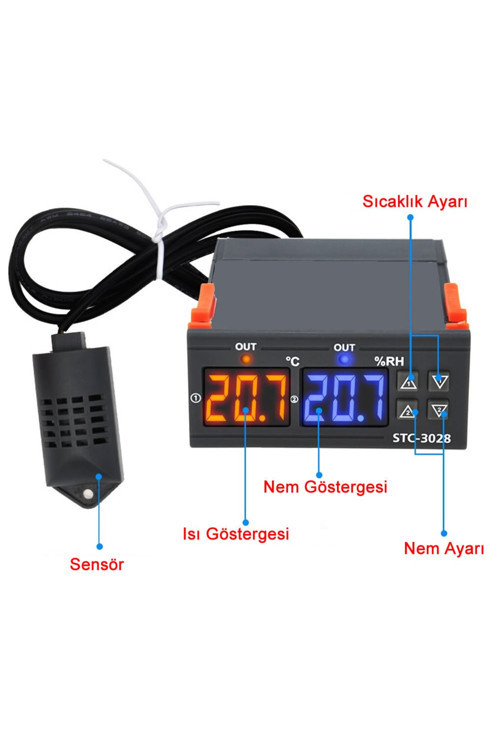 STC-3028 Isı Ve Nem Termostatı Çift Ekran 220V Isıtıcı Soğutucu Kuluçka Akvaryum Buzdolabı Fırın Sıcaklık ve neme bağlı olan iklimlendirme uygulamalarınızda kullanabileceğiniz ürün.