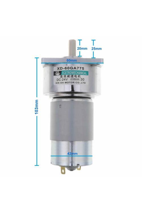 Devremarkt Xd-60Ga775 Dc Motor 24V 30Rpm 35W 40Kg.Cm Yüksek Tork Kuvvet Metal Dişli Redüktörlü Robot Cnc