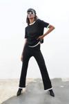 - Siyah renkteki Dex Örme T-shirt ve pantolon ikili takım, her ortamda şıklığınızı korumanızı sağlar.; - Düz deseniyle zamansız bir tarz sunan bu takım, günlük kullanım için idealdir.; - Regular kalıp sayesinde rahat hareket etme özgürlüğüne sahip olursunuz.; - Kadın ve kız kullanıcılar için tasarlanmıştır; herkesin gardırobunda yerini alacak.; - Uzun boy tasarımı ile bacaklarınızı olduğundan daha uzun gösterirken, Viskon materyali konforlu bir deneyim sunar.; - Bisiklet yakası sayesinde modern ve minimalist bir görünüm elde edersiniz.; - Casual ve günlük ortamlarda rahatlıkla tercih edebileceğiniz bu takım, tüm sezonlarda gardırobunuzun vazgeçilmezi olacaktır.; - Tunik-pantolon alt-üst takımı olarak tasarlanmıştır; pratik kombinler oluşturmanızı kolaylaştırır.; - 30 derecede makinede yıkama imkanıyla bakımı kolaydır; böylece zamandan tasarruf edebilirsiniz.; - %100 VORTEX VİSCON materyali sayesinde yumuşak dokunuşuyla teninizde hoş bir his bırakır.
