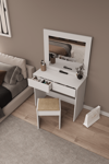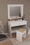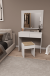 DF02109B Aynalı Puflu Beyaz Makyaj Masası – Şık, Fonksiyonel ve Geniş Depolama Alanlı Tasarım