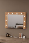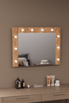 Aynanın alt kısmında yer alan, aynayla birleşik raf; makyaj malzemeleri, parfümler, tarak veya günlük aksesuarlar için düzenli ve pratik bir alan sağlar. Böylece hem şıklığı hem de fonksiyonelliği tek üründe birleştirir.