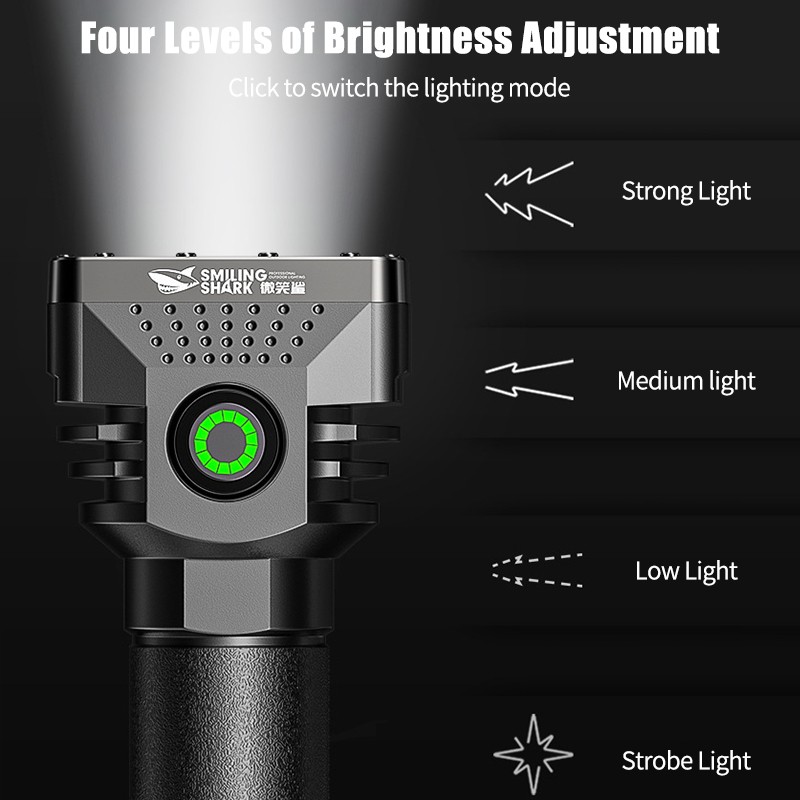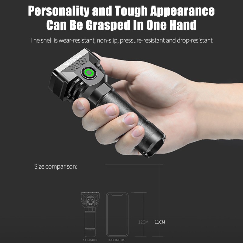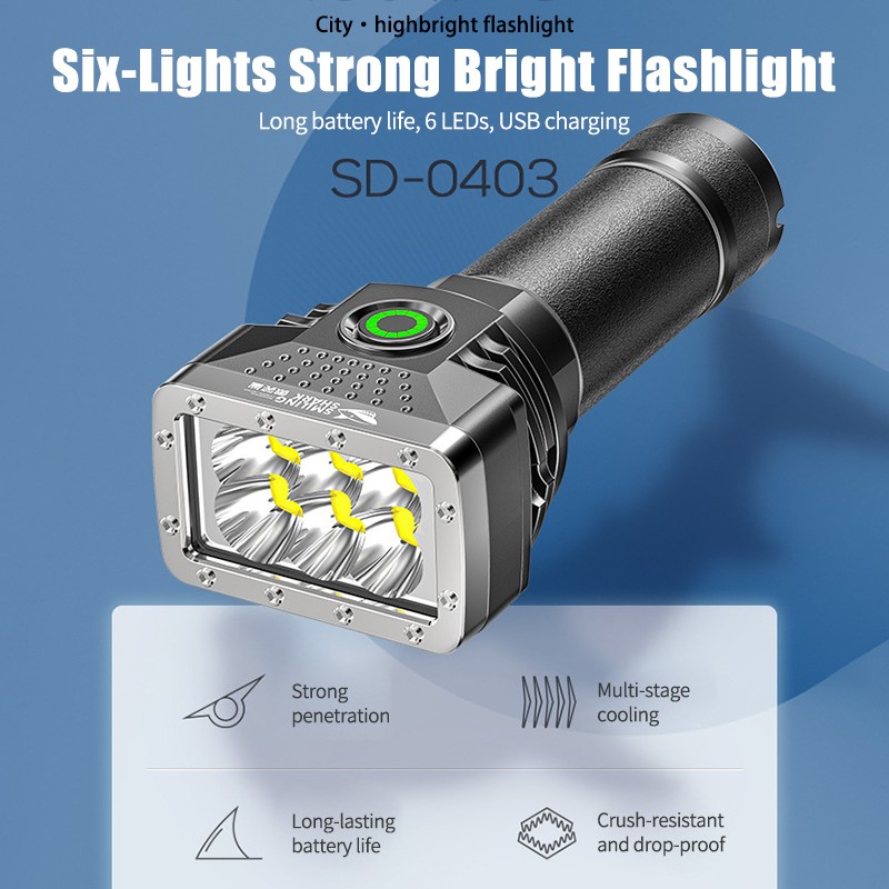 rnrnÖzellik:rn1. Altı adet yüksek ışıklı çekirdek, uzun servis ömrü, yüksek aydınlatma ve çeşitli ortamlar.rn2. 4 vitesli parlaklık ayarı, güçlü ışık, orta ışık, zayıf ışık, yanıp sönme.rn3. Güç ekranlı USB hızlı şarj arayüzünü kullanın.rn