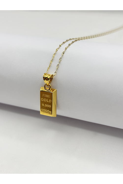 Diamine 14 Ayar Altın Aynalı Zincir Mini Külçe Kolye