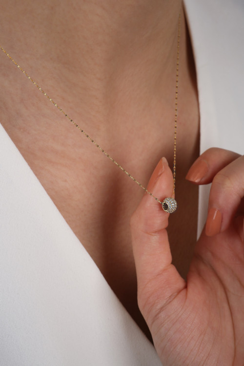 Diamine 14 Ayar Altın Aynalı Zincir Taşlı Dorika Kolye