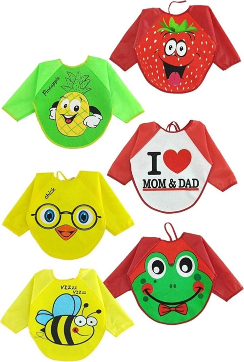diamondstar 6 Adet ( Civciv Kurbağa Betmen Çilek Karpuz Armut ) Desenli Bebek Mama Önlüğü