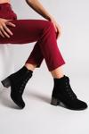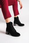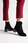DIANA Bağcıklı Fermuarlı Ortopedik Taban Topuklu Süet Kadın Bot  SST - Siyah