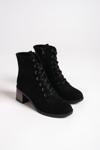 Joy Ayakkabı DIANA Bağcıklı Fermuarlı Ortopedik Taban Topuklu Süet Kadın Bot SST - Siyah
