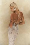 Diavonesta Bağcık Detay Dekolteli Bej Uzun Elbise