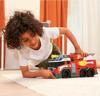 Dickie’den şimdi de su fonksiyonlu itfaiye arabası. Boyutu (37,5 cm) olan ve heyecan verici işlevlere sahip Dickie itfaiye aracıyla çocuklar cesur itfaiyeciler rolüne bürünebilirler. Mavi ışıklar ile çeşitli seslere (tipik siren dahil) ek olarak, arabada uzatılabilir bir merdiven, bir yan top, bir kıskaç kolu ve bir su topu bulunur. Çocuklar itfaiye aracının yan tarafındaki mekanik kıskaç kolunu her yöne serbestçe hareket ettirebilir. Püskürtme fonksiyonu ile çocuklara yönelik kırmızı itfaiye aracının öne çıkan özelliği, küçük tanka basılarak su püskürten, uzatılabilir merdivenin tepesindeki hareketli su topudur. Araç 2 adet 1,5V R6 ile çalışır ve piller dahildir. 3 yaş ve üzeri çocuklar için uygundur.