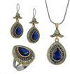 Gümüş El İşi Otantik Kök Safir Taşlı Üçlü Set Damla