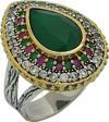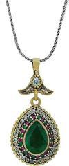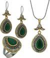 Gümüş El İşi Otantik Kök Zümrüt Taşlı Üçlü Set Damla