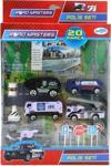 Her set içerisinde yaklaşık 6 cm boyunda 5 araç, 14 tabela ve 1 polis kartı mevcuttur.