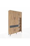 Arges Dolap 10 Raflı Tek Çekmeceli 5 Kapaklı 132x30x195 Çam-Çam/Antrasit