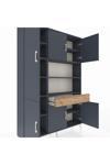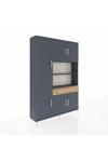 Arges Dolap 10 Raflı Tek Çekmeceli 6 Kapaklı 132x30x195 Antrasit-Antrasit/Çam