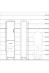 İki raf ve iki çekmeceye sahip olan bu dolap, tek askı bölmesiyle de kullanışlı bir depolama çözümü sunar.