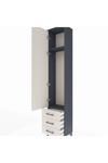 İki raf, üç çekmece ve tek askı bölmesi ile kullanışlı bir depolama alanı sunar.