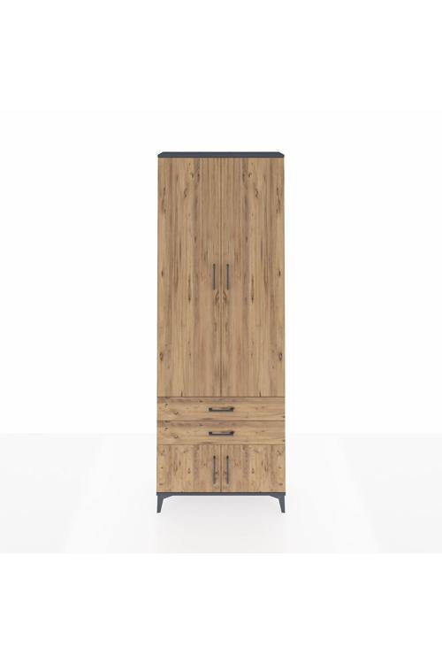 Dienni Arges Dolap 4 Raflı 2 Çekmeceli 4 Kapaklı 88 x 30 x 243 cm Antrasit - Çam