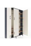 Arges Dolap 7 Raflı 5 Kapaklı Tek Askılı 132x30x195 Antrasit-Aytaşı/Çam