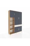 Arges Dolap 8 Raflı Tek Çekmeceli 5 Kapaklı 132x30x195 Çam-Antrasit/Aytaşı