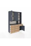 Arges Dolap 8 Raflı 5 Çekmeceli 3 Kapaklı 132x30x195 Antrasit-Antrasit/Çam