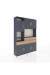 Arges Dolap 9 Raflı 3 Çekmeceli 6 Kapaklı 132x30x195 Antrasit-Antrasit/Çam