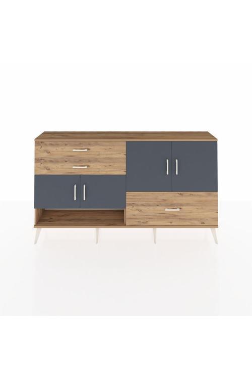 Dienni Arges Konsol 3 Raflı 3 Çekmeceli 4 Kapaklı 176 x 30 x 99 cm Çam - Antrasit - Çam
