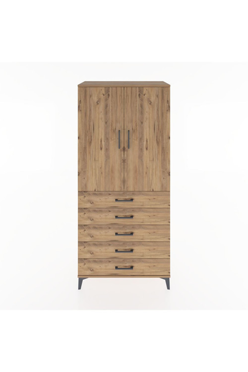 Dienni Hyperion Dolap 3 Raflı 5 Çekmeceli 2 Kapaklı 88 x 44 x 195 cm Çam - Çam