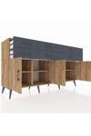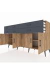 Hyperion Konsol 3 Raflı 6 Çekmeceli 4 Kapaklı 176x44x99 Çam-Çam/Antrasit