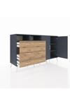 Hyperion Konsol 4 Raflı 6 Çekmeceli 2 Kapaklı 176x44x99 Antrasit-Antrasit/Çam