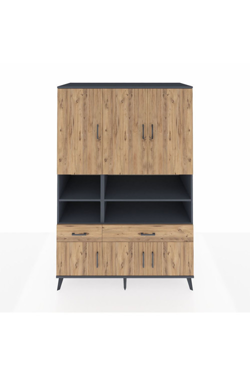 Kronos Dolap 8 Raflı 2 Çekmeceli 6 Kapaklı 132x59x195 Antrasit-Çam/Çam