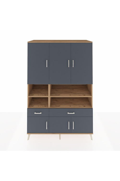 Kronos Dolap 8 Raflı 2 Çekmeceli 6 Kapaklı 132x59x195 Çam-Antrasit/Antrasit