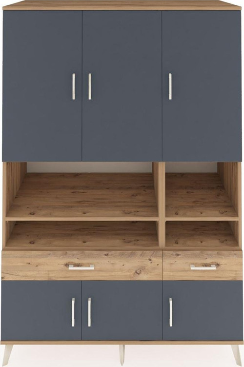 Kronos Dolap 8 Raflı 2 Çekmeceli 6 Kapaklı 132x59x195 Çam-Antrasit/Çam