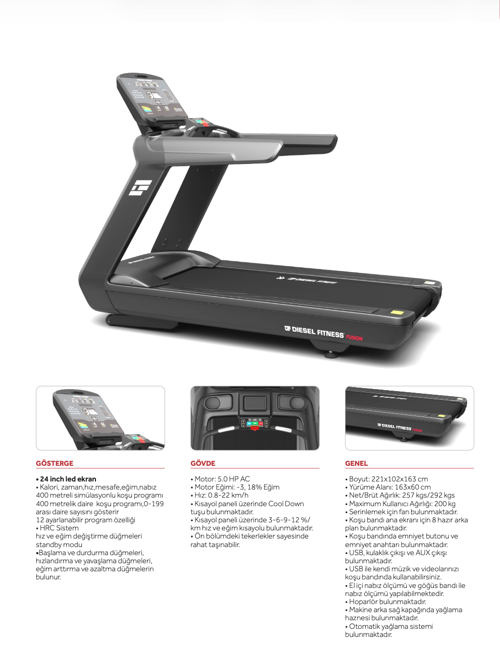 - Diesel Fitness koşu bantları, şık ve zarif siyah rengiyle her türlü spor alanına uyum sağlar.