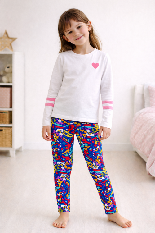 - Canlı ve renkli desenleriyle 6-9 yaş arası kız çocuklarının enerjisini yansıtan tayt.; - Pamuklu materyali sayesinde yumuşak dokunuşu ve konforlu kullanımı ile öne çıkar.; - Lastikli bel tasarımı, rahat bir oturuş sağlarken hareket özgürlüğünü kısıtlamaz.; - Mono kapama şekli ile pratik kullanım sunar ve kolayca giyilip çıkartılabilir.; - Düz dokuma kumaş tipi, dayanıklılığı artırırken şık bir görünüm kazandırır.; - Boru paça tasarımı modern siluetiyle dikkat çeker ve rahat hareket etme imkanı tanır.; - Casual ortamlarda günlük kullanım için idealdir; cool ve rahat bir stil oluşturur.; - Türkiye'de üretilmiştir; yerel iş gücüne destek olurken kaliteli ürünler sunar.;