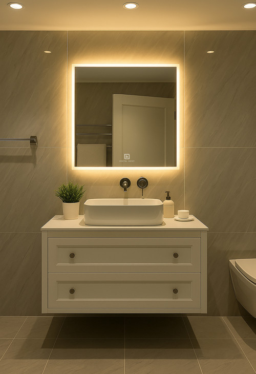 Digital Dokunmatik & Dimli Butonlu Kare Işıklı Ayna (60-80Cm)