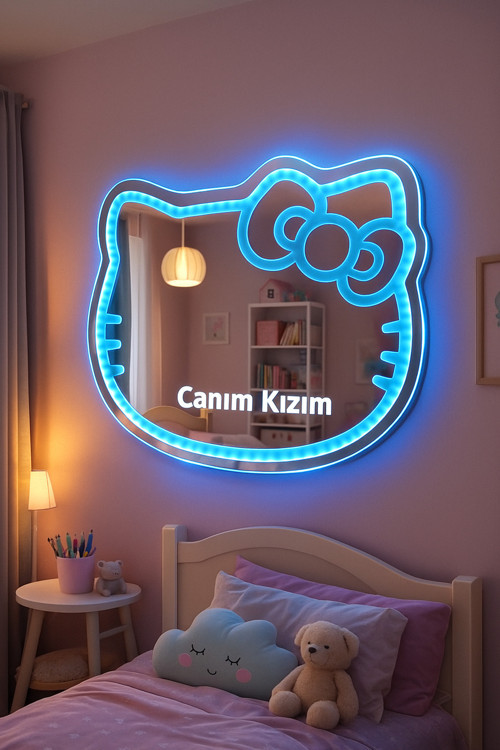 - Kızınızın ismini aynanın üzerine yazabiliriz bize mesaj gönderin!!! - Hello Kitty temalı bu güzel ayna, çocuk odalarına neşe ve eğlence katmak için tasarlanmıştır.