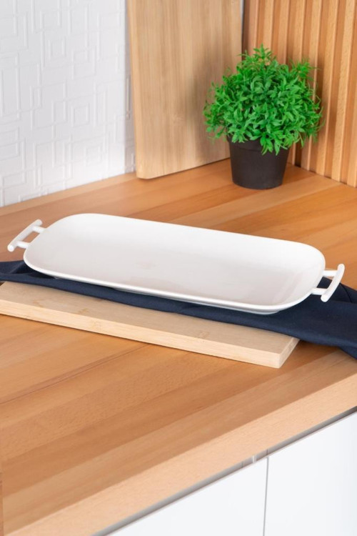 Digithome Acar Bianco Perla Porselen Kulplu Servis Tabağı Dikdörtgen Beyaz 39 Cm - SCT-05385 C320.033