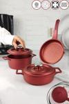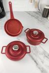 Digithome Oms 3’lü Mini Döküm Tencere Seti Kırmızı – 3720 – 3721 – 3722